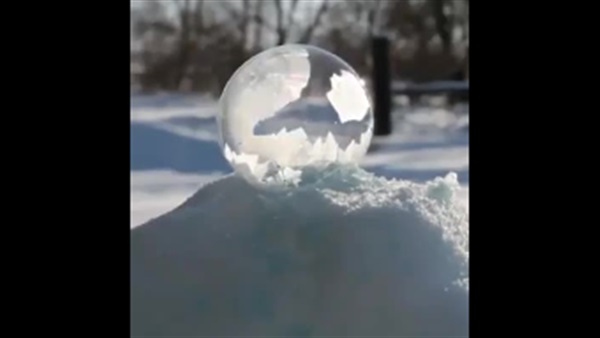 شاهد.. فقاعة هواء وهي تتجمد من برودة الجو