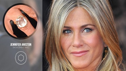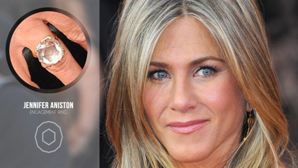جنيفر أنيستون خاتم خطوبة النجمة جنيفر أنيستون المُكوّن من قطعة ألماس ضخمة يبلغ ثمنه أكثر من مليون دولار.