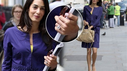 أمل علم الدين زوجة النجم الهوليوودي الوسيم جورج كولوني وتبلغ تكلفة خاتم خطبتها 7500 الف دولار، وهو من الزمرد والبلاتين.