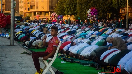 أدي العشرات من المصريين والسوريين، صلاة العيد في ساحات مدينة 6 أكتوبر جنبا إلى جنب، وسط حالة من الفرح والبهجة عمت الجميع عقب انتهاء الصلاة.كما أدي المصريين والسودانين في فيصل و الهرم الصلاة وسط انتشار لبائعي الحلوي السورية و السودانية.