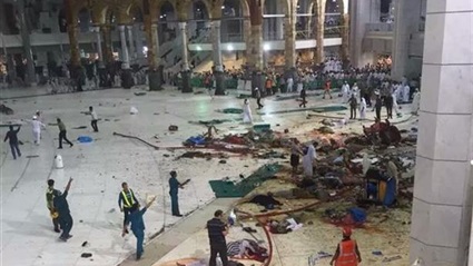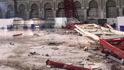 وفي الأراضي السعودية وتحديدًا في الحرم المكي، وقعت في الساعة الـ5:10 من مساءَ يوم الجمعة الموافق 11 سبتمبر 2015، آله الرفع المتواجدة في الحرم المكي، التي كانت ضمن الأدوات المستخدمة في توسعة المسجد الحرام، وأسفر وقوع الرافعة عن وقوع أكثر من 108 قتيل، وحوالي 238 جريح، وذلك بسبب تعرض المدينة المنورة إلى عواصف رملية وياح شديدة وأمطار في ذلك اليوم.
