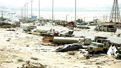 وفي الحادي عشر من عام 1990، ألقى الرئيس الأمريكي الأسبق، جورج بوش خطابًا عبر التلفزيون يهدد فيه باستخدام القوة لطرد الجنود العراقيين من الكويت، بعد سيطرة الجيش العراقي عليها في الثاني من أغسطس عام 1990، وفي اليوم الثامن من نفس العام، قامت العراق بضم الكويت إليها، وإلغاء جميع السفارات الدولية في الكويت، بالإضافة إلى إعلان الكويت المحافظة رقم 19 للعراق وتغيير أسماء الشوارع والمنشآت.