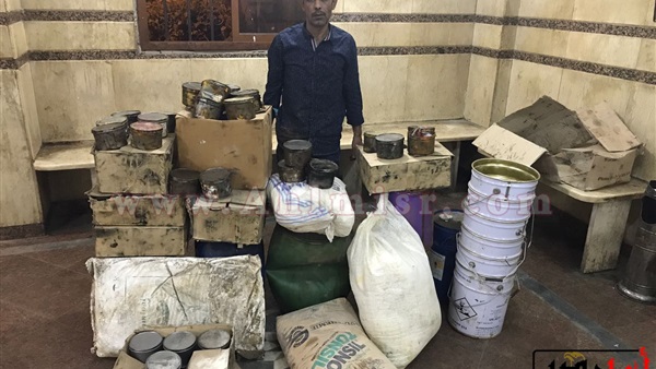 وبإجراء التحريات تبين صحة ما ورد من معلومات، بإستهداف المخزن أمكن ضبطه وعثر بداخل المخزن على 8 براميل بلاستيك بداخلهم مواد سائلة "شحم"، 5 براميل صاج فارغة، 7 كراتين بداخلهم علب بلاستيك وصاج معبأ بمسحوق اسود اللون "شحم"، كرتونة بداخلها كيس بلاستيك يحوي مسحوق أبيض اللون، 6 شكائر ورقية بداخلهم مسحوق أبيض اللون، 3 شكائر بلاستيكية بداخلهم مسحوق أبيض اللون.