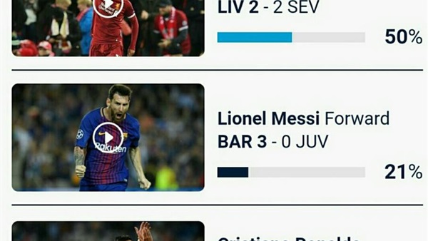 وتفوق "صلاح" بفارق كبير على "ميسي" و"رونالدو" بالتصويت في الجولة الأولى من دوري الأبطال، حيث وصل إلى 50 %، بفرق كبير عن ميسي صاحب المركز الثاني 21%، ورونالدو صاحب المركز الثالث 13%، وذلك قبل غلق التصويت بعد 13 ساعة.
