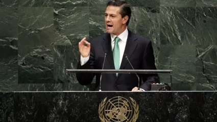 -الرئيس المكسيكي إنريك بينيا نييتولا تسير الأمور على ما يرام داخليا بالنسبة للرئيس المكسيكي، حيث يواجه تضاؤلا في نسبة تأييده، بالإضافة إلي ذلك ينشغل نييتو بالزلزال الهائل الذي ضرب الساحل الجنوب الغربي، وكذلك بإعصار كاتيا.جوان ذكر أن الرئيس المكسيسي يخشى كذلك حال مشاركته في الدورة 72 من تطرق الرئيس الأمريكي مجددا إلى مسألة بناء جدار حدودي بين البلدين، لما تمثله تلك المسألة من حساسية.