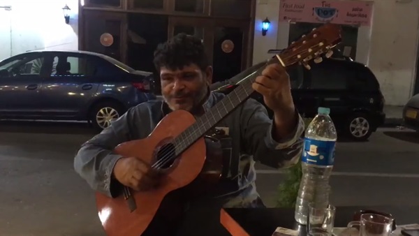 والفيديو يرصد الرجل كثير الشبه بالمخلوع "محمد مرسي" وهو يغني أغنية شهيرة تحمل اسم "هوتيل كاليفورنيا" وهو يعزف ايضا خلال الغناء، مع تشجيع الجمهور.