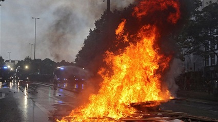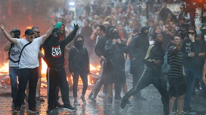 وألقى المتظاهرون الألعاب النارية وقنابل الدخان على الشرطة بعد محاولتهم في وقت سابق اختراق اجتماع مجموعة السبع.