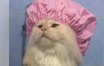 تداول نشطاء مواقع التواصل الإجتماعي مقطع فيديو مصور يرصد قطة وهي تستحم بطريقة راقية وتضع على شعرها حمام كريم مثل الفتيات وعليه الواقي الخاص بالرأس أثناء الإستحمام.