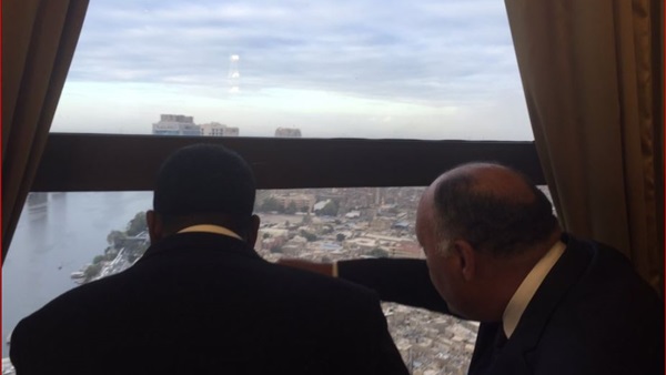 جمعت وزير الخارجية المصري سامح شكري، ونظيره الأثيوبي وركنِه جيبيُّو، صورًا نشرها أحمد أبو زيد، المتحدث الرسمي باسم الوزارة، وهما يشاهدان نهر النيل من مبنى الوزارة على كورنيش النيل في القاهرة.