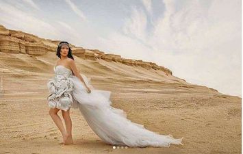 ظهرت النجمة الأردنية صبا مبارك، مرتدية فستان زفاف أبيض وسط الرمال في الصحراء، وذلك في أحدث جلسة تصوير لصالح مجلة Enigma.