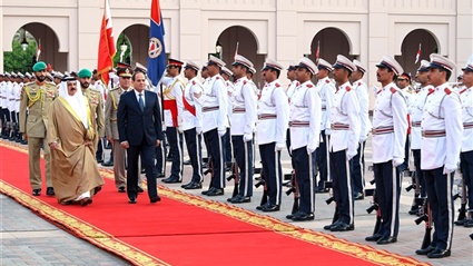 وأضاف المتحدث الرسمي أن الرئيس أعرب عن تقديره لملك البحرين على حفاوة الاستقبال، مؤكداً ما يجمع الشعبين المصري والبحريبنى من روابط أخوة ومودة وتاريخ مشترك ومصير واحد، معرباً عن تطلع مصر لتعزيز علاقات التعاون الثنائي مع البحرين في جميع المجالات. كما شدد الرئيس علي أهمية مواصلة العمل على توحيد الصف العربي وتضامنه لمواجهة التحديات التي تواجه المنطقة العربية، والتصدي لمحاولات التدخل في الشئون الداخلية للدول العربية، مؤكداً سيادته عدم سماح مصر بالمساس بأمن واستقرار أشقائها في دول الخليج، وأن أمن الخليج يُعد جزءاً لا يتجزأ من أمن مصر.