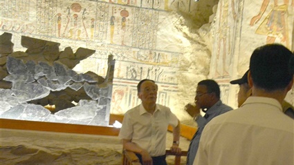 زار نائب الرئيس الصينى وانغ سي شان، مقبرة رمسيس السادس فى وادى الملوك، وزار مقبرة 62 والتى تخص الملك توت عنخ آمون، واستمع إلى شرح مفصل عن المقبرتين الأثريتين.
