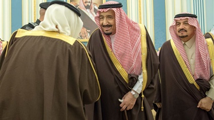 ووفقا لوكالة الأنباء السعودية "واس"، "استقبل خادم الحرمين الشريفين الملك سلمان بن عبد العزيز آل سعود في قصر اليمامة في الرياض اليوم، الأمراء، ومفتي عام المملكة، والعلماء والمعالي، وجمعا من المواطنين الذين قدموا للسلام عليه".
