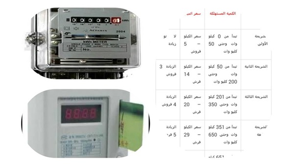 وجاء فى بيان كل شريحة من الشرائح الست، والتى تبدأ بوصف الشريحة ثم الحد الأدنى والأقصى لها، وكذلك سعر الشريحة ثم مقدار الزيادة الأخيرة لكل شريحة على حده، وتبدأ الشريحة باستهلاك من صفر كيلو حتى 50 كيلو وات، وذلك بتكلفة 5 قروش للكيلو، أما الشريحة الثانية فتبدأ من 50:200 كيلو وات، وسعر الكيلو فيها بقيمة 14 قرشا، وبالنسبة للشريحة الثالثة من 201:350 كيلو وات، بثمن 20 قرشا للكيلو الواحد.