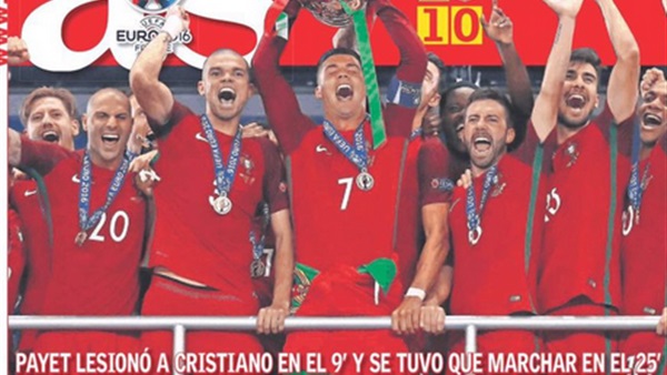 ونشرت "دياريو دي نوتيثياس" صورة لكريستيانو رونالدو وإيدر على غلافها وقالت إن مهاجم ريال مدريد "بكى من الحزن والفرحة في أسعد يوم في مسيرته".