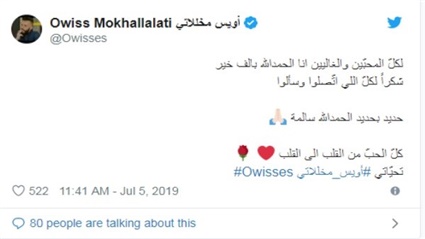 تعرض الممثل السوري أويس مخلللاتي لحادث سير مروع في لبنان حيث انقلبت به السيارة واصطدمت بأحد المحال التجارية، ولهذا طمأن أويس جمهوره عبر حسابه بموقع "تويتر"، وكتب: "لكلّ المحبّين والغاليين انا الحمدالله بالف خير، شكراً لكلّ اللي اتّصلوا وسألوا، حديد بحديد الحمدالله سالم كلّ الحبّ من القلب الى القلب".