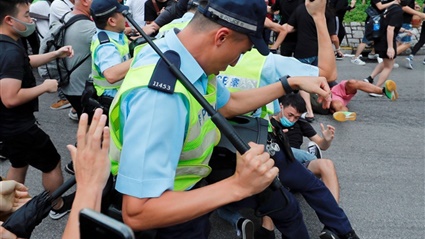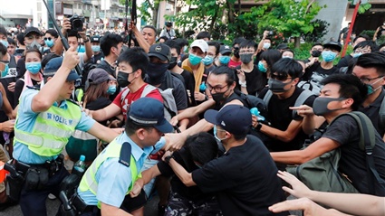 وشارك ملايين في احتجاجات بالشوارع واقتحم مئات مبنى البرلمان في الأول من يوليو احتجاجا على مشروع قانون معلق حاليا يقضي بإرسال المشتبه بارتكابهم جرائم في هونغ كونغ إلى الصين للمثول للمحاكمة هناك.