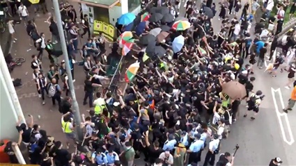وحسب "رويترز" بدأ الاحتجاج في شونغ شوي، وهي ليست بعيدة عن مدينة شينتشن الصينية، بشكل سلمي، ولكنه تحول إلى مناوشات، حيث ألقى المتظاهرون مظلات وقبعات صلبة على الشرطة التي ردت بالتلويح بالهراوات وإطلاق رذاذ الفلفل.