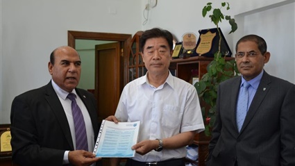 واقترح نائب رئيس الجامعة، على الوفد خلال اللقاء التعاون فى مجال الزراعة واستخدام الطرق الحديثة فى الرى، والتعاون أيضاً في مجال الاستزراع السمكى، والتعاون فى مجال الترجمة الآلية، وتعليم اللغة العربية للأجانب، وذلك من خلال تقديم دورات تدريبية وورش عمل، والقيام بتبادل الأساتذة والطلاب لهذا الغرض.