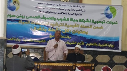 عقدت إدارة التوعية بشركة مياه الشرب والصرف الصحي ببني سويف، اليوم الإثنين، ندوة توعوية مع أئمة مساجد مركز بنى سويف، تحت عنوان "كل نقطة مياه بتفرق "لتوضيح أهمية ترشيد استهلاك المياه من جانب المواطنين والأهالي، وتناولت الندوة التوعوية الخاصة بترشيد المياه فى إطار الحملة القومية لترشيد استهلاك المياه تحت عنوان "كل نقطة بتفرق" مناقشة الوضع الراهن بمصر فى المياه، وكيفية التعامل مع شبكات الصرف الصحى، و التعريف بالموبايل 125، والتعريف بالعدادات مسبوقة الدفع.