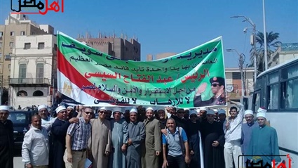 وكانت مديرية الأوقاف ببني سويف، قد نظمت تحت إشراف الدكتور محمد محمود ابوحطب، وكيل وزارة الأوقاف، مسيرة من أئمة الأوقاف في حب مصر عقب صلاة الجمعة بمسجد عمر بن عبد العزيز متجهة إلى القاهرة لتأييد مسيرة التنمية والتقدم، برئاسة الشيخ رفيق محمد عاشور، وكيل المديرية.