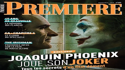 تصدرت صورة الجوكر غلاف مجلة Premiere لعدد شهر سبتمبر، وتصدر المجلة باللغة الفرنسية، وذلك في أعقاب إجراء المجلة لحوار مع بطل الفيلم خواكين فينيكس للحديث عن أهم أسرار والحكايات التي دارت خلف كواليس صناعة الفيلم.