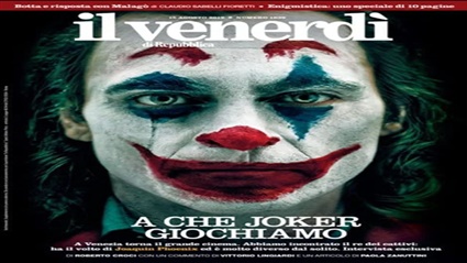 ظهر الجوكر على غلاف مجلة Il Venerdi لعدد شهر سبتمبر بالمكياج الشهير للشخصية، وتصدر المجلة باللغة الإيطالية.