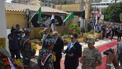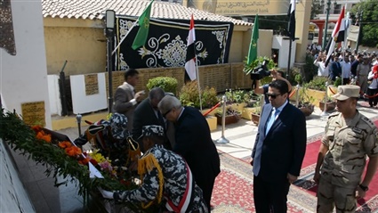 وقرأ الحضور الفاتحة على أرواح الشهداء من رجال الجيش والشرطة الذين ضحوا بحياتهم فداء للوطن تحقيقًا لرفعته وصونا لكرامته، وعزفت الفرقة الموسيقية لقوات الأمن، السلام الجمهوري، وسلام الشهيد.