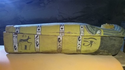 ومن جانبة قال فتحي ياسين مدير عام آثار البر الغربي بالأقصر، أن التابوت الأول لسيدة تدعى " تي ابو"، ويبلغ طولة 195 سم، علية زخارف ملونة وكتابات هيروغليفية