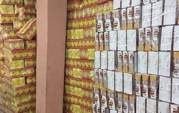 وعثر بداخل المصنع على 1.600 طن سكر، 700 كيلو زيت طعام، 625 كيلو كاكاو بودر، 300 كيلو حليب بودر، 220 كيلو شيكولاتة، 249600 عبوة مقرمشات معدة للبيع، 142560 عبوة بسكويت شيكولاتة ـ ذرة معدة للبيع، وجميعها مجهولة المصدر وغير مصحوبة بأية مستندات تدل على مصدرها، 4 ماكينة تصنيع، كميات كبيرة من الاستيكرات والأغلفة، وتحرر عن ذلك المحضر اللازم، وتولت النيابة العامة التحقيق.