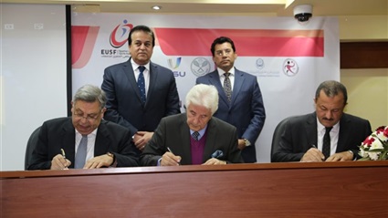 عقد الدكتور خالد عبد الغفار وزير التعليم العالي والبحث العلمي رئيس مجلس إدارة الاتحاد الرياضى المصرى للجامعات، والدكتور أشرف صبحى وزير الشباب والرياضة صباح اليوم الاثنين مؤتمرا صحفيا للإعلان عن تفاصيل حصول مصر على حق تنظيم بطولتى العالم للجامعات للإسكواش ٢٠٢٢، ولكرة اليد ٢٠٢٤.
