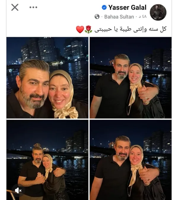 وعلق ياسر جلال على الصور قائلاً: “كل سنة وإنتي طيبة يا حبيبتي”، وتفاعل معه عدد كبير من متابعيه بالعديد من التعليقات التي هنأتهما بتلك المناسبة.