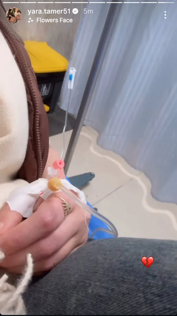 وظهرت يارا في الفيديو وهي متصلة بالمحاليل الطبية وتبدو عليها علامات الإرهاق والتعب، ما أثار قلق متابعيها. كما ظهرت في لقطة أخرى وهي على جهاز التنفس، وعلّقت بكلمات قصيرة عبر خاصية القصص قائلة: 'ادعولي.. أنا تعبانة أوي'.