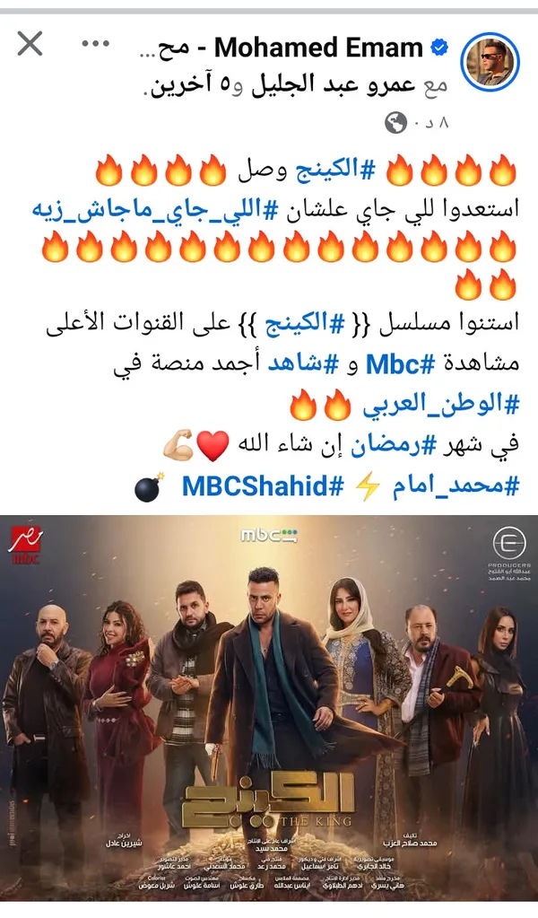 ويُعد «الكينج» من الأعمال المنتظرة بقوة في الموسم الرمضاني، نظرًا لشعبية محمد إمام الجماهيرية والنجاحات التي حققها في أعماله السابقة، بالإضافة إلى اجتماع مجموعة من الأسماء المميزة في عمل واحد، ما يرفع سقف التوقعات حول مستوى العمل فنيًا وجماهيريًا.