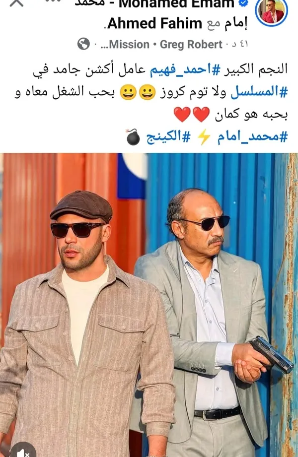 ونشر محمد إمام صورة تجمعه بأحمد فهيم من كواليس العمل، وعلّق قائلًا إن فهيم «عامل أكشن جامد في المسلسل»، في إشارة واضحة لقوة المشاهد الحركية التي يتضمنها العمل، وهو ما لاقى تفاعلًا واسعًا من الجمهور والمتابعين.
