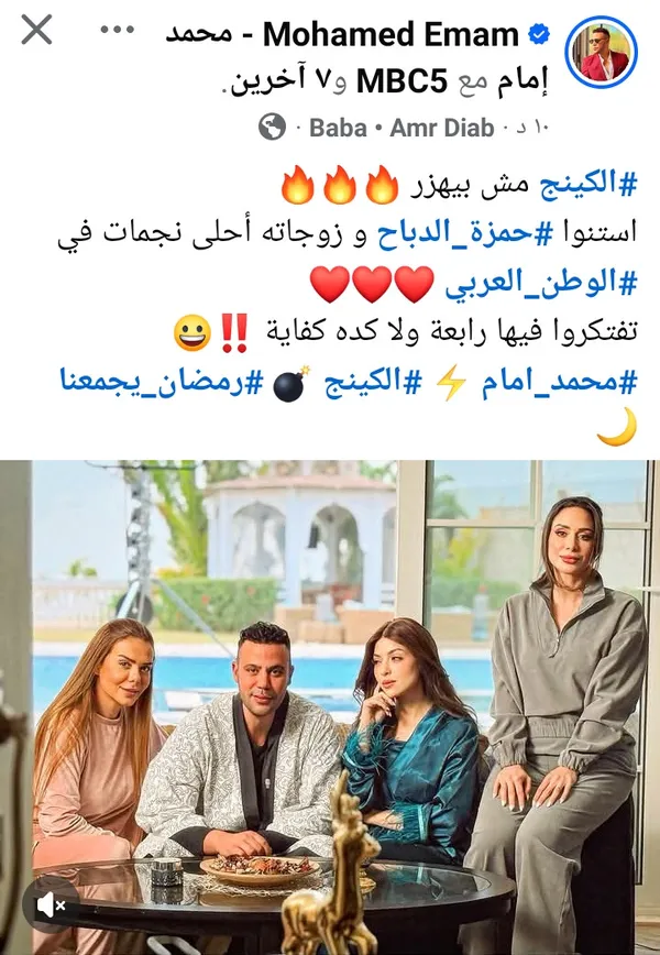 وكتب إمام في منشوره: “الكينج مش بيهزر استنوا حمزة الدباح وزوجاته أحلى نجمات في الوطن العربي”، في إشارة إلى طبيعة الشخصية التي يقدمها هذا الموسم.