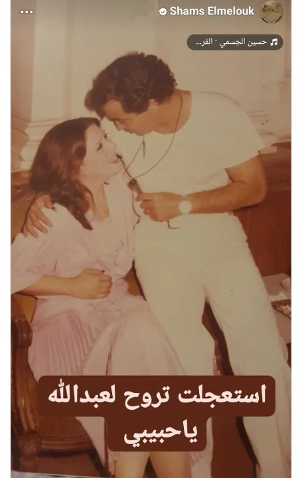 وعبّرت شمس البارودي عن اشتياقها الكبير له، مسترجعة صورة من حياتهما الأسرية، وعلّقت بكلمات مؤثرة قائلة: «استعجلت تروح لعبد الله يا حبيبي».