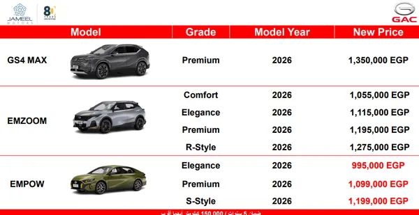 أعلنت جميل موتورز عن خفض أسعار سيارتها الرياضية جي إيه سي EMPOW، حيث وصلت قيمة التخفيض في أعلى فئة إلى 141 ألف جنيه، من أجل زيادة منافسة السيارة داخل فئة السيدان الرياضية وتحفز الإقبال عليها في ظل المنافسة المتزايدة.