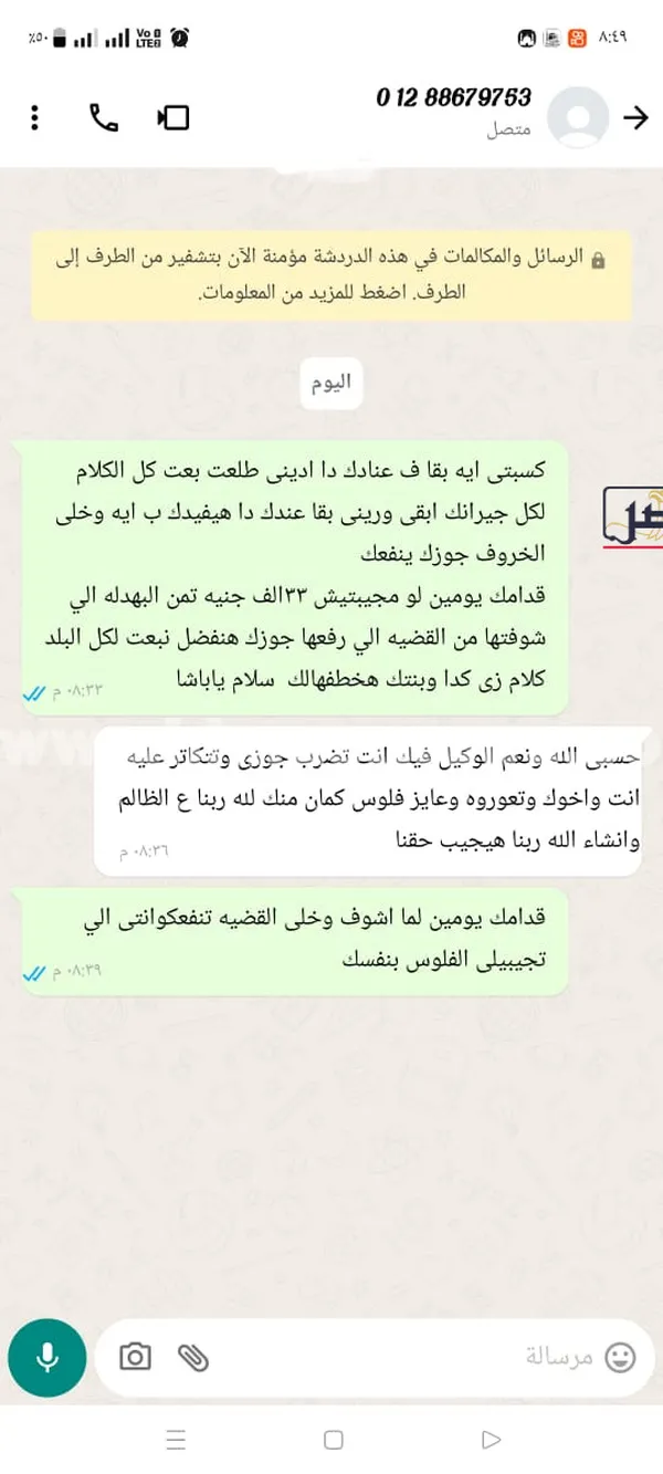كما اتهمته بفبركة محادثات وهمية على تطبيق “واتساب”، حيث أنشأ محادثة باسمها على أساس أنها تتحدث معه، وضمنها عبارات خادشة للحياء، توحي بوجود علاقة غير مشروعة، ثم قام بإرسال هذه المحادثات إلى جيرانها وعدد من أهالي القرية، بعد حصوله على أرقامهم.