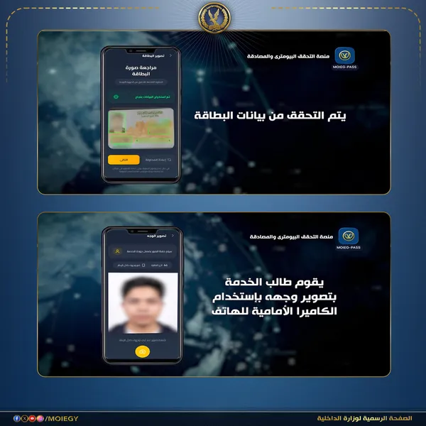 إستحدثت وزارة الداخلية ولأول مرة فى مصر منصة وطنية موحدة للتحقق البايومترى والمصادقة اللحظية بإستخدام خوارزميات التعرف على الوجوه، وهو منتج وطنى متكامل تم تطويره بسواعد مصرية وفقاً لأحدث المعايير والتقنيات العالمية بهدف تأمين بيانات المواطنين وحماية تعاملاتهم مع الخدمات الخاصة بوزارة الداخلية على شبكة الإنترنت.