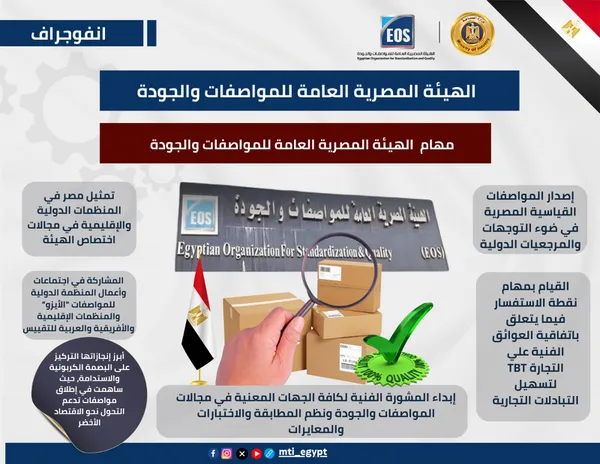 بالإنفوجراف.. خدمات وأنشطة الهيئة العامة للمواصفات والجودة ودورها في دعم وتحديث الصناعة المصرية