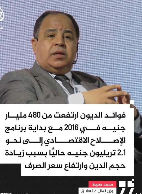 من جانبه، أشار محمد معيط، وزير المالية السابق، إلى أن فوائد الدين العام ارتفعت بشكل كبير منذ بداية برنامج الإصلاح الاقتصادي، حيث كانت تبلغ نحو 480 مليار جنيه في 2016، لتصل حاليًا إلى نحو 2.1 تريليون جنيه، نتيجة زيادة حجم الدين وارتفاع سعر الصرف.