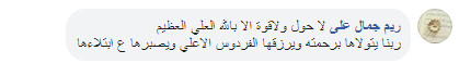 وقالت ريم علي عبر تعليق لها: 'لا حول ولاقوة الا بالله العلي العظيم، ربنا يتولاها برحمته ويرزقها الفردوس الاعلى ويصبرها على ابتلاءها'.