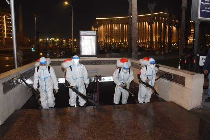 وتم الدفع بأطقم التطهير للقيام بأعمالها بمجمع التحرير وواجهاته الخارجية والمناطق المحيطة وكذا موقف أتوبيسات الفريق عبدالمنعم رياض وموقف أحمد حلمي بإعتبارهما من أهم مواقف النقل الجماعي بما يحتويانه من خطوط مواصلات جماعية لكل أنحاء القاهرة الكبرى، إضافة إلى محطة مترو الأنفاق 'أنور السادات' بميدان التحرير ومحطة مترو الشهداء 'بميدان رمسيس' وما يحتويانه من بوابات للدخول والخروج وأرصفة ، فضلاً عن دفع عربات التطهير المتحركة والثقيلة لمحطة سكك حديد مصر التى تشهد كثافة عددية من المستخدمين لها يومياً.