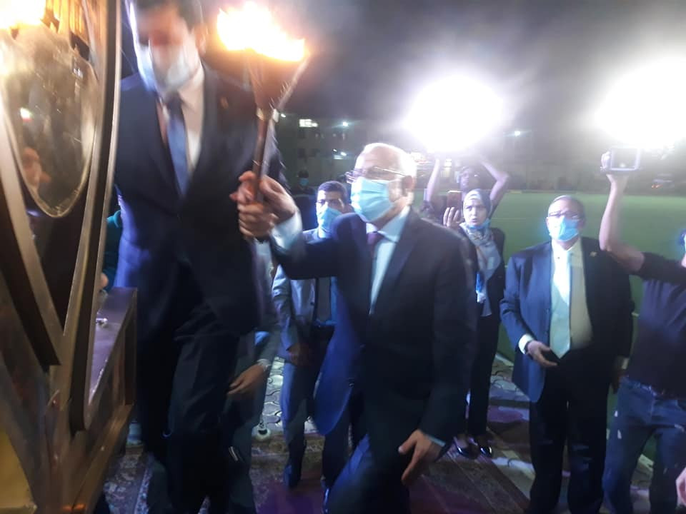 ووضع وزير الرياضة الشعلة في مكانها بملعب الهوكي في المدينة الرياضية ببورسعيد، بحضور اللواء عادل الغضبان، محافظ بورسعيد، والدكتور حسني غندر، رئيس الاتحاد العام للشركات، ومجلس إدارة الاتحاد وقيادات الوزارة.
