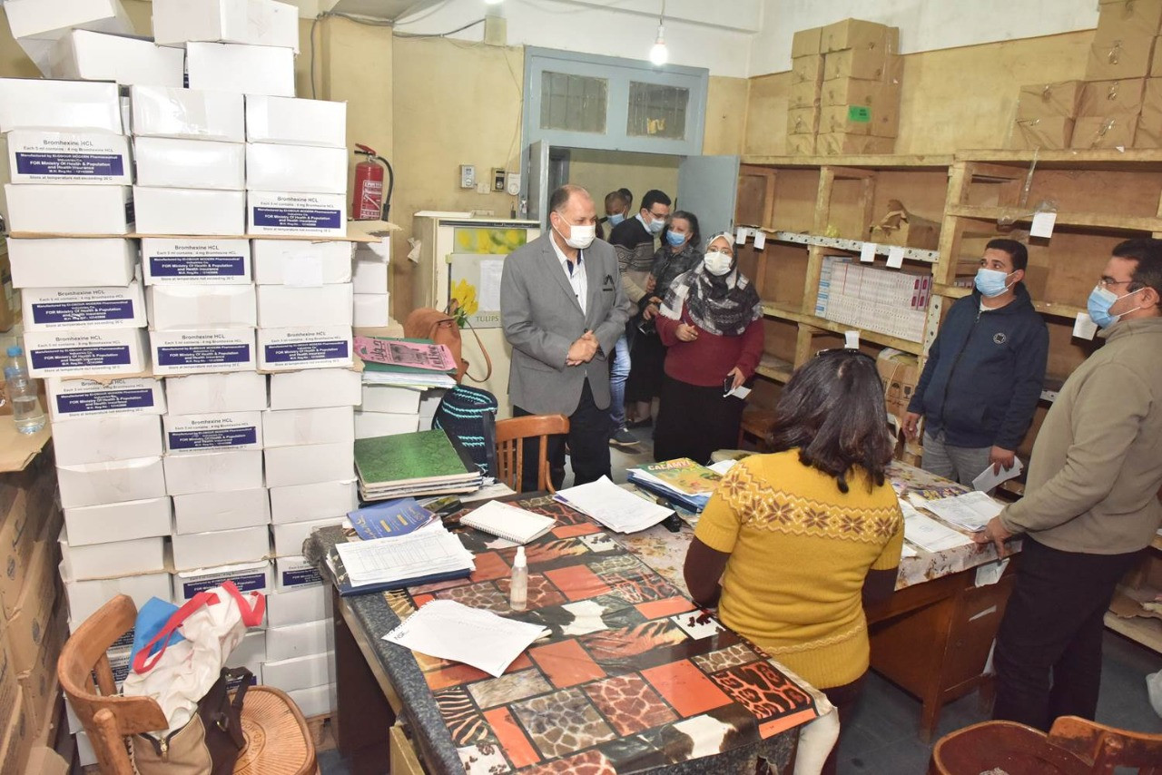 بدأ المحافظ جولته بتفقد أقسام مخزن الأدوية الرئيسي بجوار مستشفى الرمد واستمع إلى شرح للدكتورة راندا رفعت مدير إدارة الصيادلة بمديرية الصحة والدكتور سمر محمد مدير إدارة التموين الدوائي عن الأرصدة المتوفرة وكميات الأدوية المستخدمة في علاج فيروس كورونا المستجد واحتياجات المستشفيات والمخزون الاستراتيجي المتوفر ثم تفقد المحافظ غرف تخزين الأدوية بأنواعها وخاصة الأدوية المستخدمة في بروتوكول العلاج الخاص بمرضى فيروس كورونا المستجد وتأكد من توافرها بكميات كبيرة لسد احتياجات مستشفيات العزل والمستشفيات المركزية والعامة وتابع دفاتر الصادر والوارد من الأدوية وكلف لجنة التفتيش والمتابعة بعمل تقرير كامل عن كميات الأدوية الموجودة والاحتياجات المطلوبة وفقًا لمعدلات الاستهلاك الحالية مشددًا على ضرورة توفير مخزون استراتيجي من الأدوية لسد الاحتياجات المستقبلية للمستشفيات حتى تتمكن من تلبية الاحتياجات وتوفير الشنط الخاصة بعلاج حالات العزل المنزلي والمخالطين بكافة القرى والمراكز.