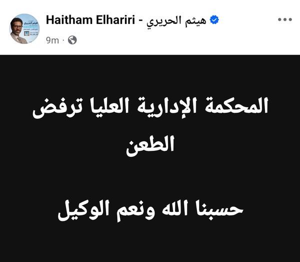 وانتهت المحكمة الإدارية العليا اليوم إلى رفض طعن هيثم الحريري، وبالتالي لن يتمكن من خوض سباق الانتخابات البرلمانية 2025.