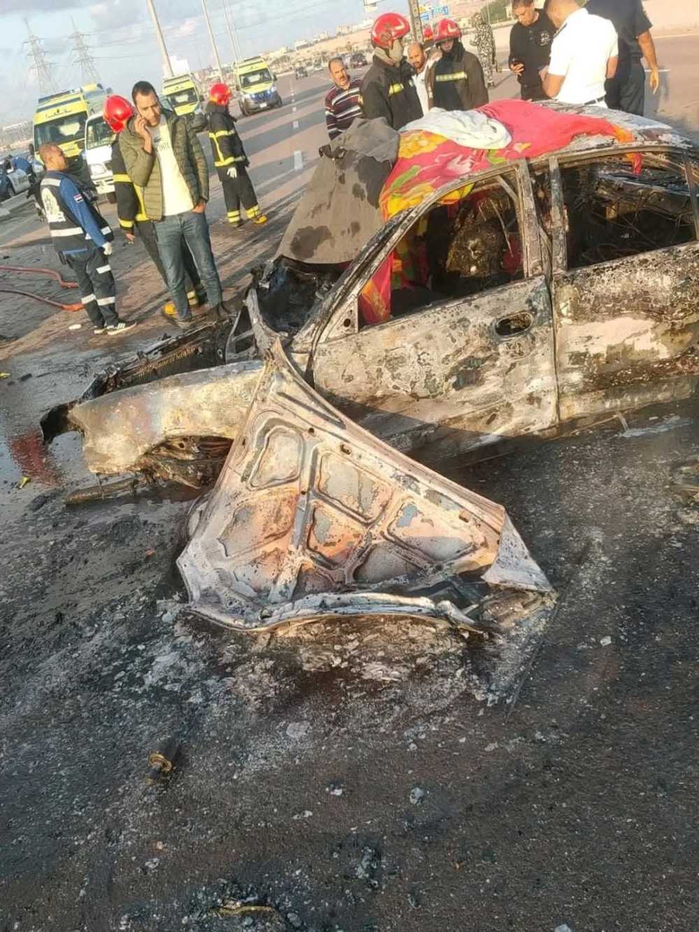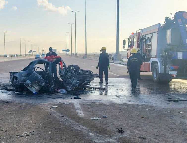 وكانت النيران قد اشتعلت داخل السيارة نتيجة حدوث ماس كهربائي أسفر عن تفحم ركابها الثلاثة، قائدها وآخران كانا يرافقانه بالمقعد الخلفي، فيما أصيب الرابع إصابات بالغة، نُقل على إثرها إلى المستشفى لتلقي العلاج، وهو ما كشفته المعاينة الأولية التي أجرتها الأجهزة الأمنية فور وصولها.