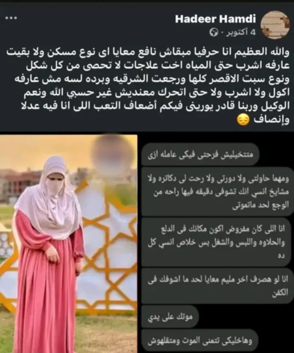أثارت رسالة تهديد بالسحر لسيدة من محافظة الشرقية مقيمة بالأقصر قبل وفاتها بفترة قصيرة موجة حزن كبيرة على صفحات السوشيال ميديا.