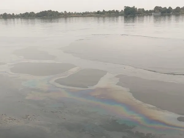 ظهور بقعة زيت كبيرة بمياه نهر نيل إسنا بالأقصر وسط مخاوف الأهالي